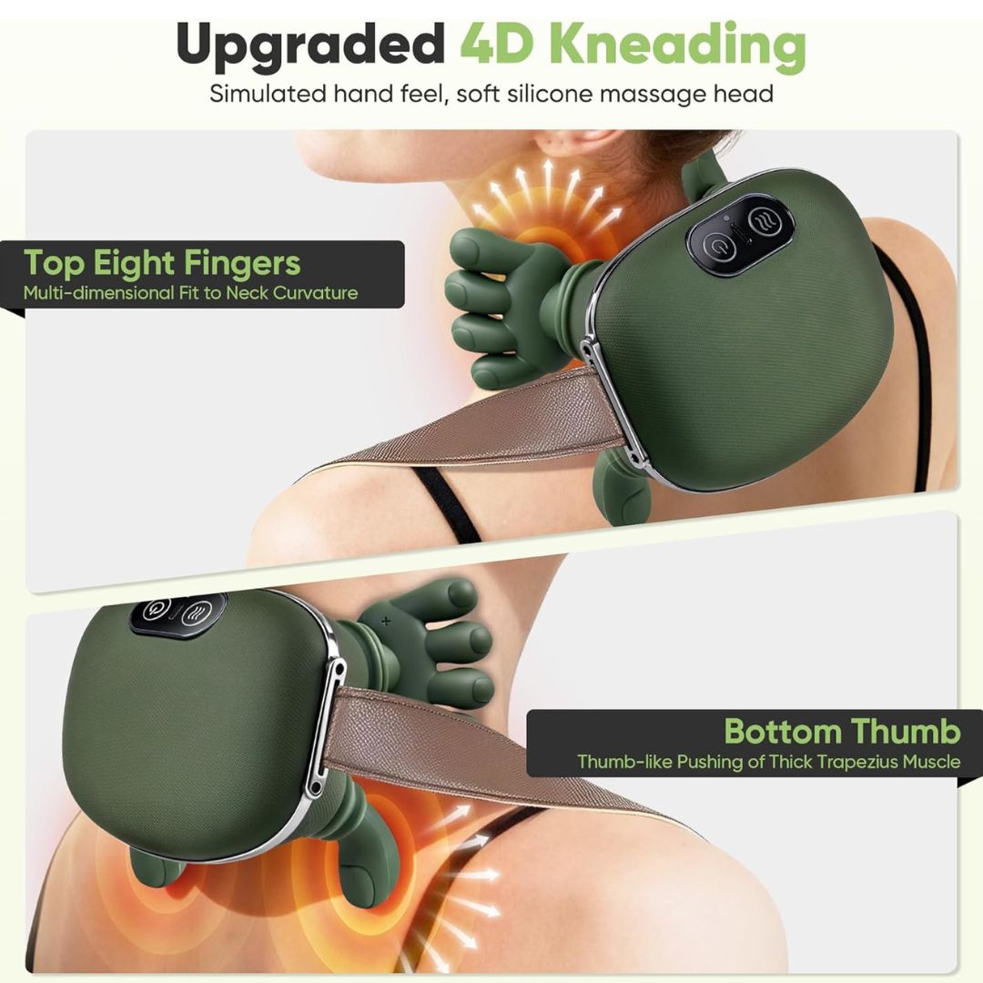 Bionic Heated Massager, Wireless Portable Shiatsu Neck and Back Massager, Electric Deep Tissue 4D Kneading Massage, Simulated Human Hand Design for Pain Relief and Muscle Relax 1 Year Warranty
