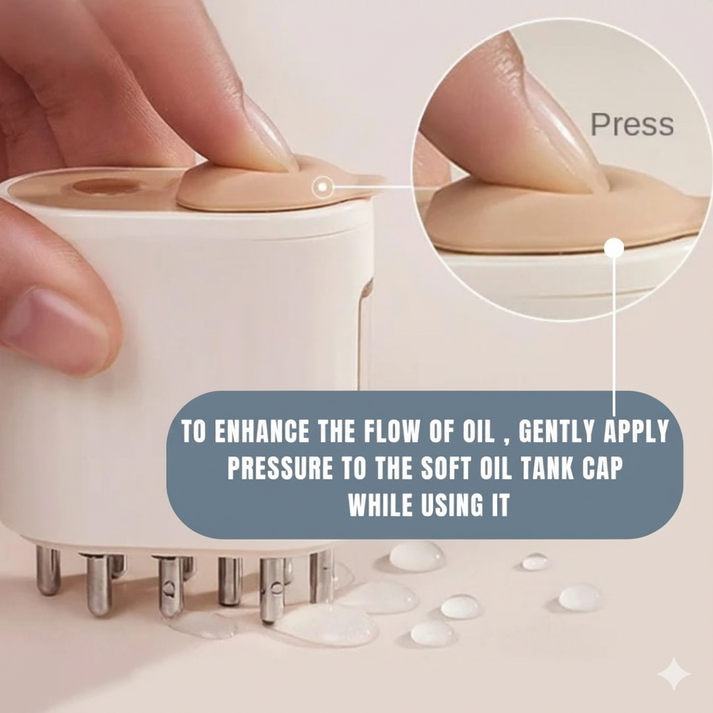 3. Place it on the scalp and press the silicone cover. The oil will flow out of the comb teeth and penetrate into the scalp.