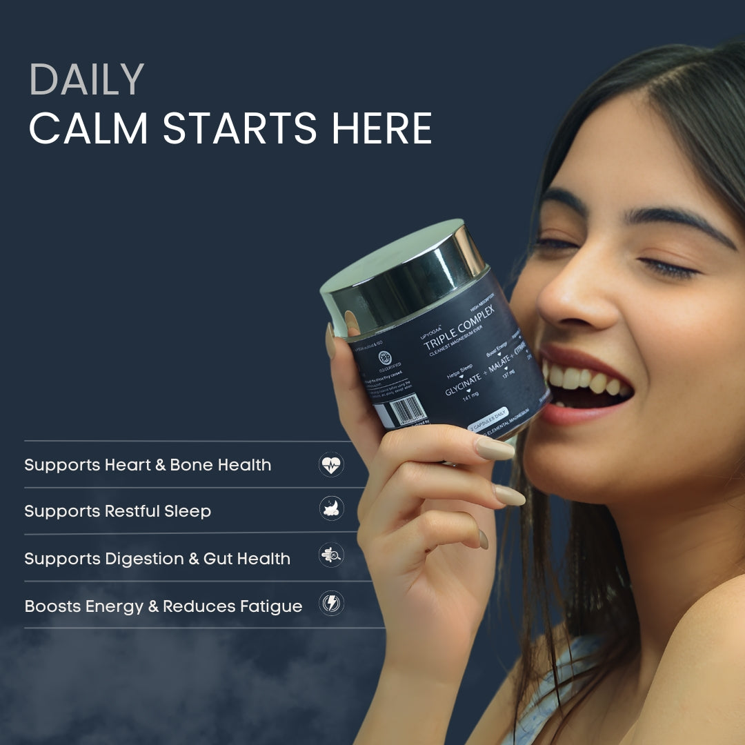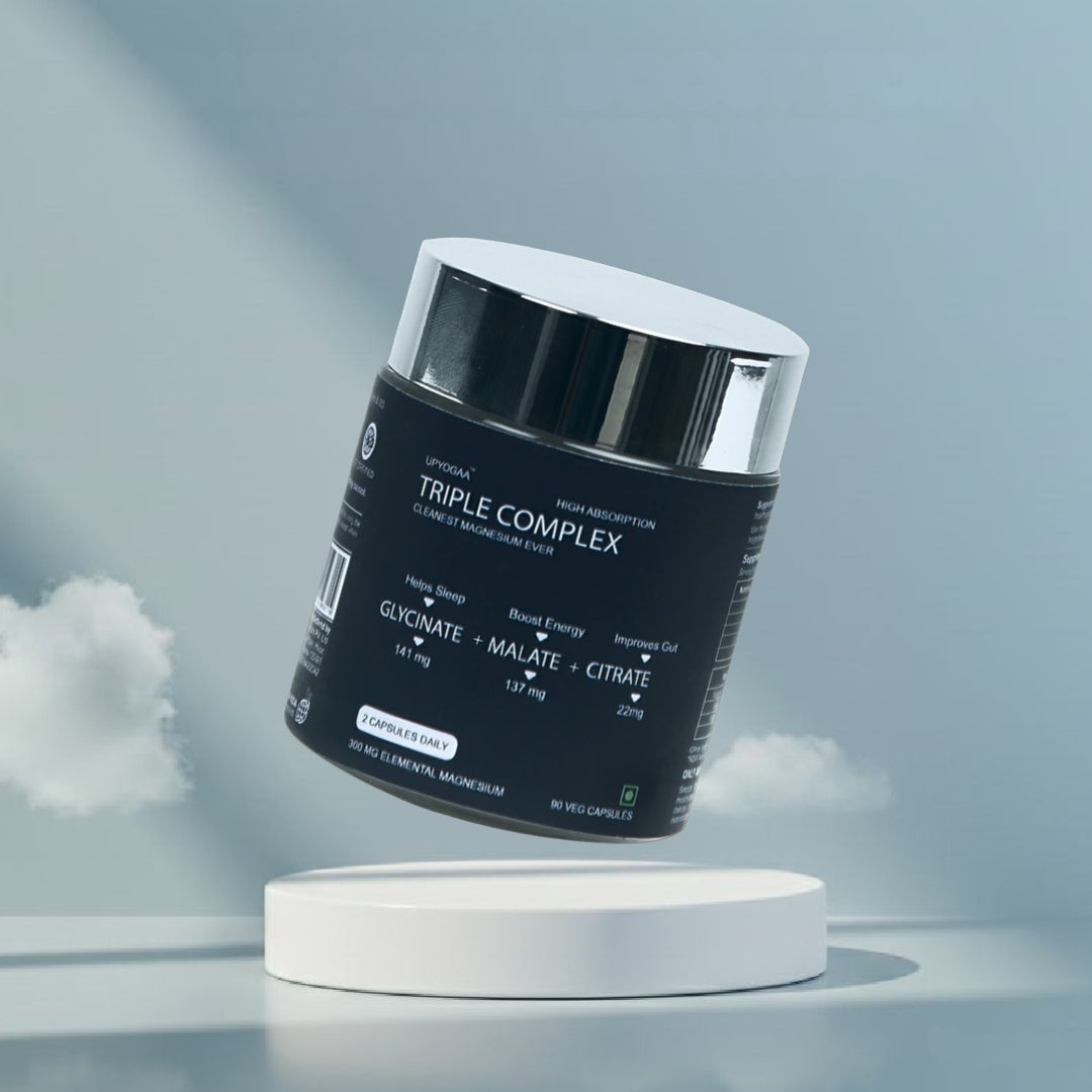 Upyogaa Triple Magnesium combines three bioavailable forms to deliver better absorption, minimal digestive discomfort, and broader health benefits.