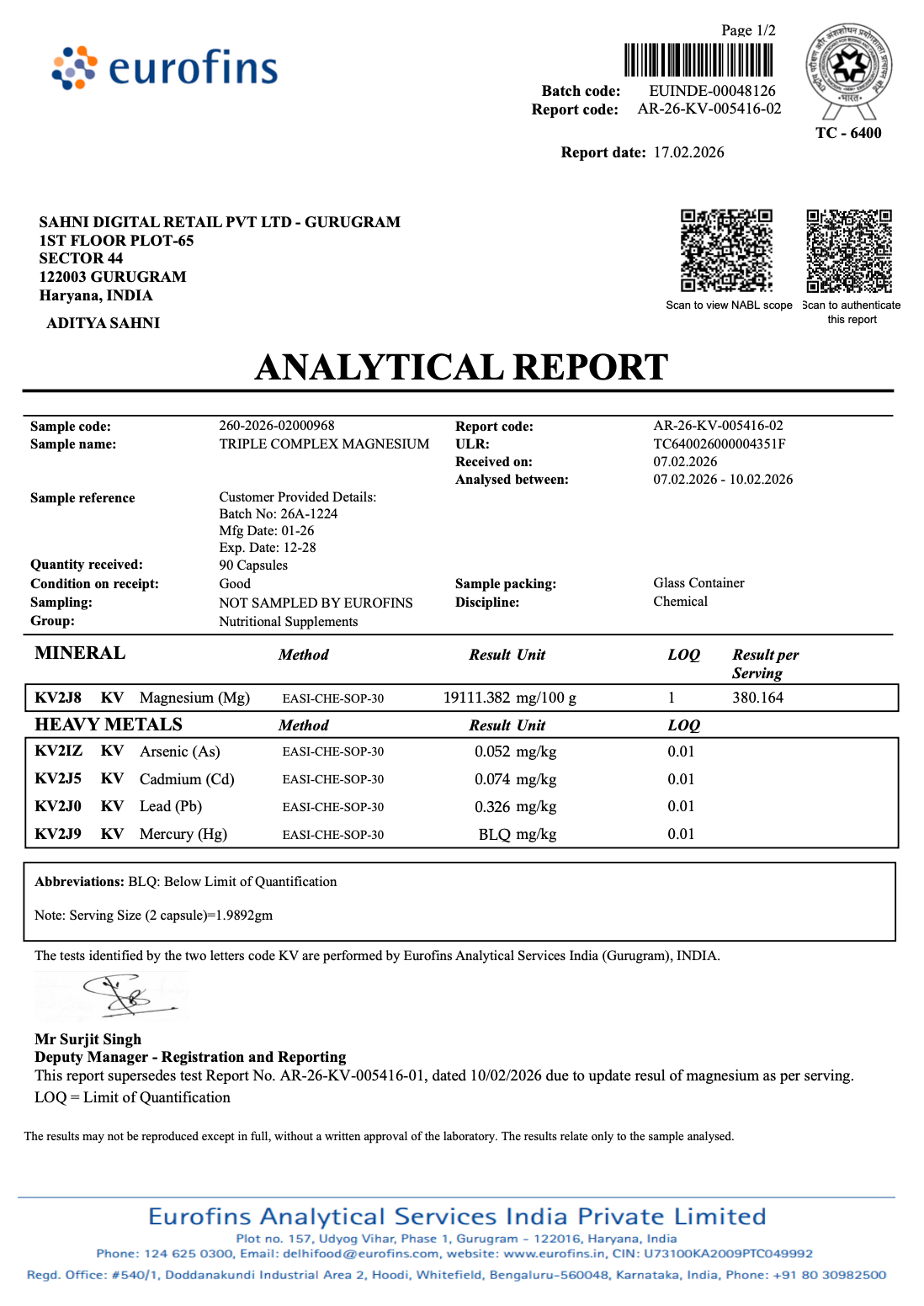Different forms of magnesium work differently in the body. Upyogaa’s Triple Magnesium Complex ensures maximum absorption and broader benefits by combining:
