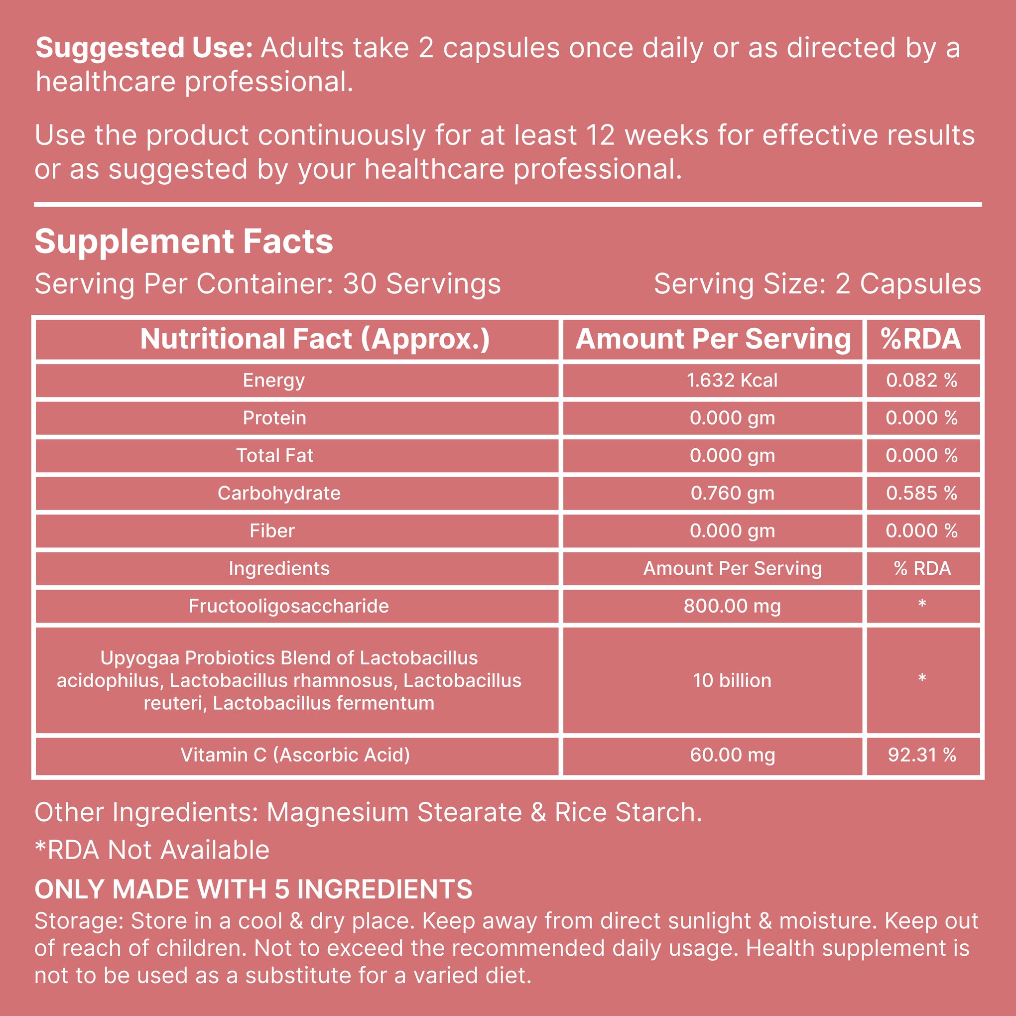 - Magnesium Stearate & Rice Starch (Excipients)